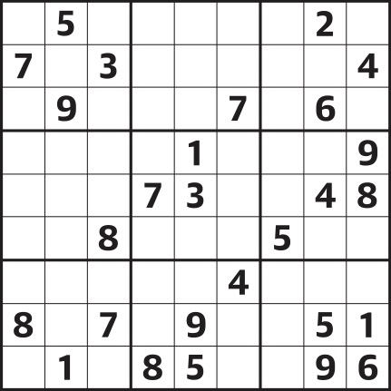 Fill the grid so that every row, every column and every 3x3 box contains the numbers 1 to 9.