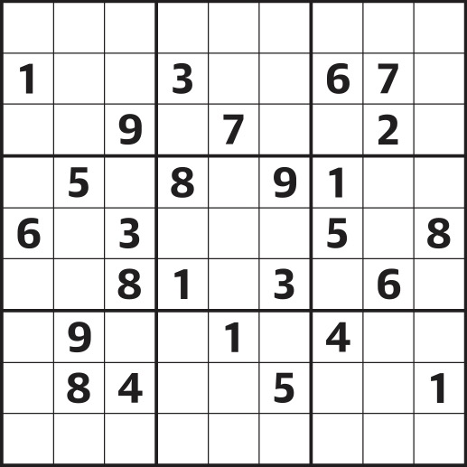 Fill the grid so that every row, every column and every 3x3 box contains the numbers 1 to 9.