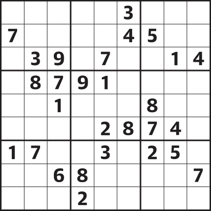Fill the grid so that every row, every column and every 3x3 box contains the numbers 1 to 9.