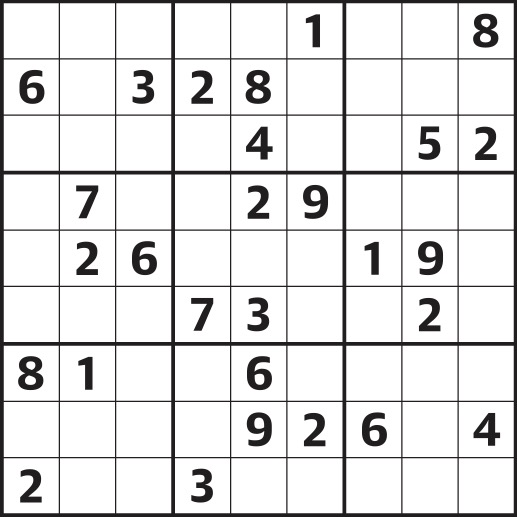Fill the grid so that every row, every column and every 3x3 box contains the numbers 1 to 9.
